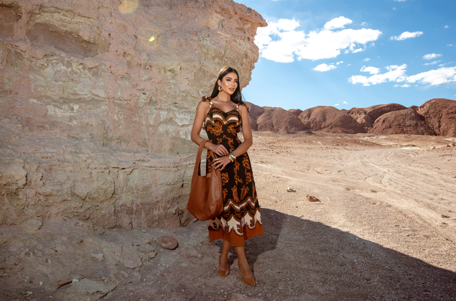 O vestido midi com detalhe na alcinha de amarrar, é uma peça charmosa e versátil. O modelo tem um corte fluido, que proporciona conforto e movimento, As alcinhas são ajustáveis, permitindo que o vestido seja modelado de acordo com o corpo, Esse modelo é ideal para looks descontraídos ou para eventos mais casuais.
