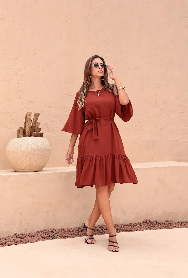 NOSSO VESTIDO SUPER COMFORTAVEL FOI DESENVOLVIDA E PESADA NO COMFORTO, COM DETALHES DE CINTO OU FACHA DE AMARRAÇÁO NA CINTURA REMOVIVEL